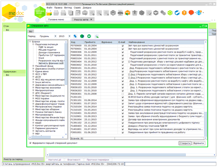 1. Нужно зайти: Звітність – Реєстр звітів – Створити звіт. В открытом окне ставим текущий период и выбираем бланки отчетов: