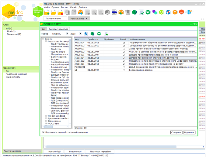 1. Нужно зайти: Звітність – Реєстр звітів – Створити звіт. В открытом окне ставим текущий период и выбираем бланки отчетов: